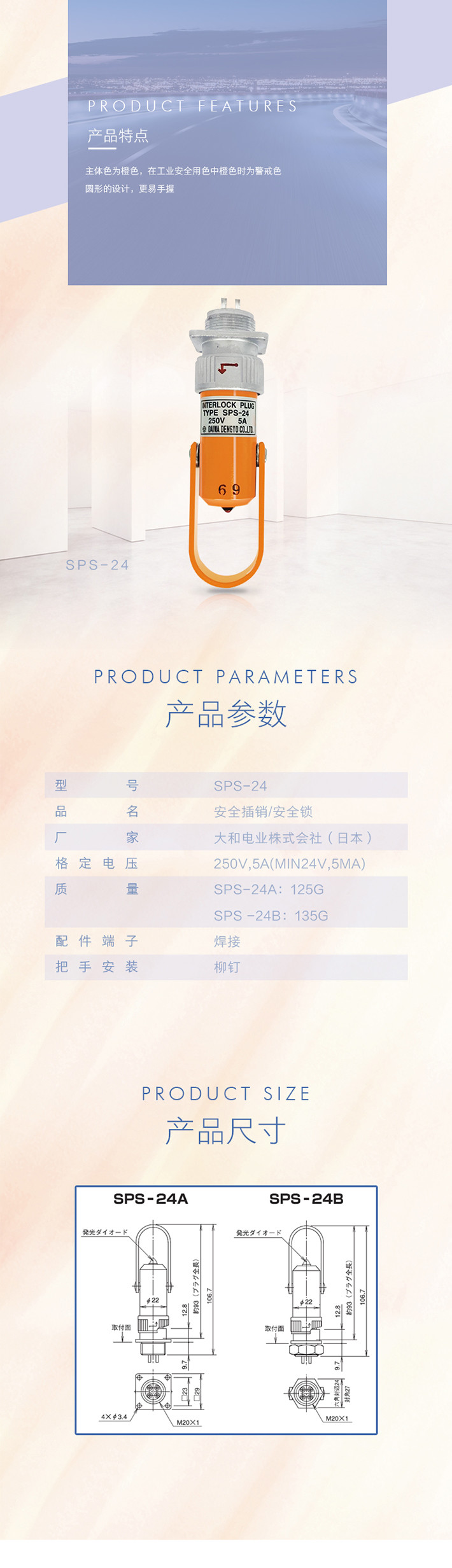 中山川井貿易有限公司現貨供應日本大和電業Daiwa Dengyo安全插件(INTERLOCK PLUG),SPS-24安全鎖,SPS-24安全開關,SPS-24安全栓,SPS-24安全插銷,SPS-24連鎖插頭,SPS-24連鎖開關,SPS-24連鎖插銷。歡迎垂詢,電話:0760-85338100,傳真:0760-85338185,網站:www.mzlswkj.com,郵箱:sales11@zskawai.com