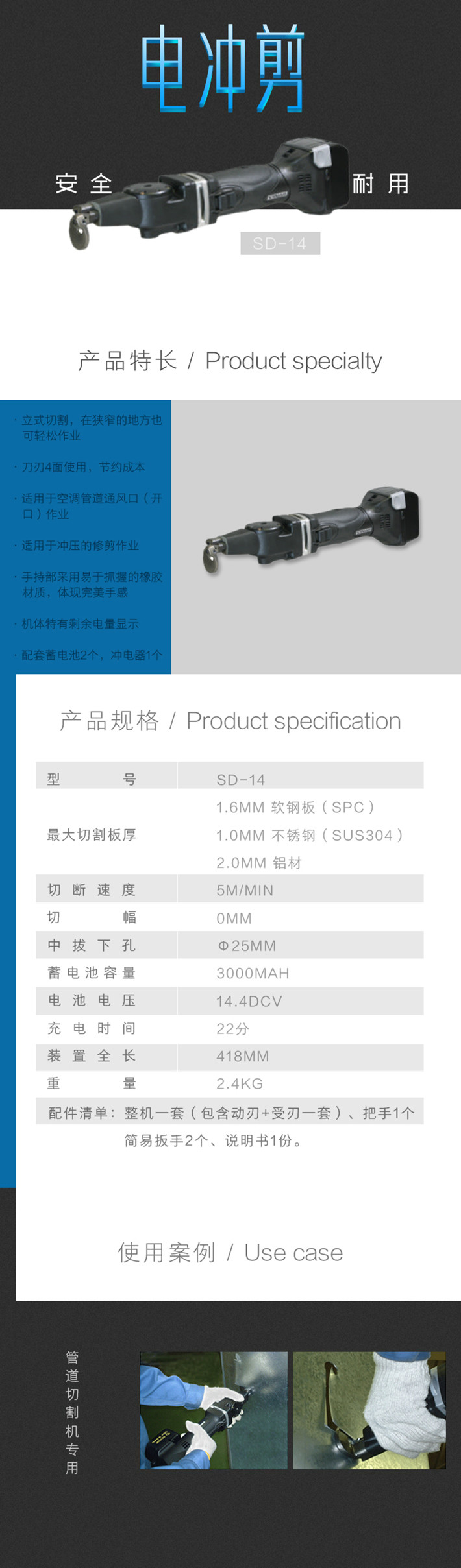 中山川井貿易有限公司是日本三和株式會社在中國的總代理,銷售維修日本三和SANWA電沖剪、坡口機。SD-14電沖剪,SD-14管道切割機,SD-14電剪刀。歡迎垂詢,電話:0760-85338981-605,傳真:0760-85338185,郵箱:sales-ec@zskawai.com,QQ:1521225565