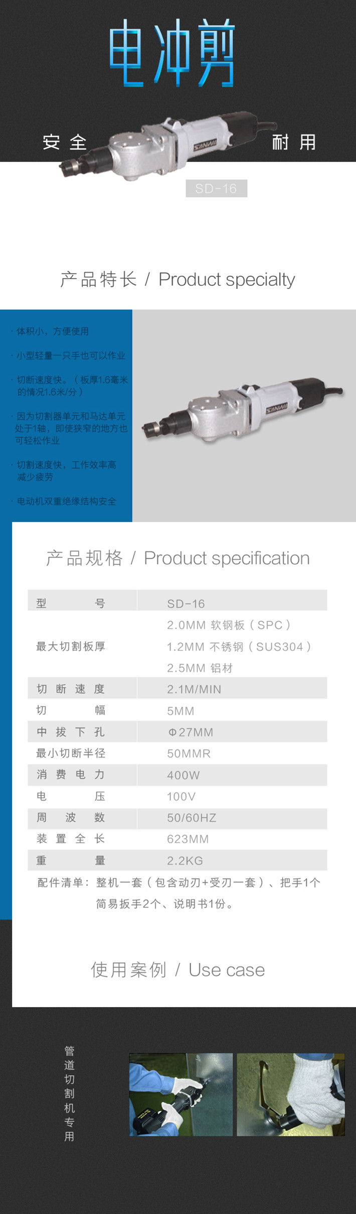 中山川井貿易有限公司是日本三和株式會社在中國的總代理,銷售維修日本三和SANWA電沖剪、坡口機。SD-16電沖剪,SD-16管道切割機,SD-16電剪刀。歡迎垂詢,電話:0760-85338981-605,傳真:0760-85338185,郵箱:sales-ec@zskawai.com,QQ:1521225565
