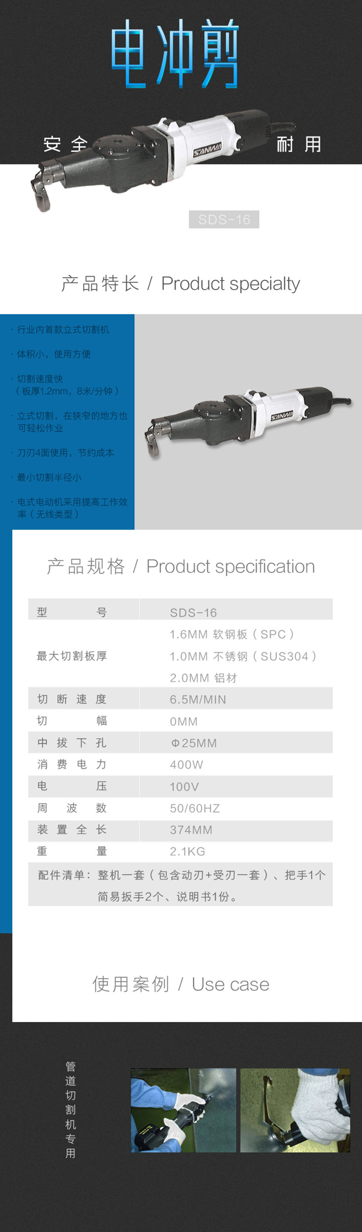中山川井貿易有限公司是日本三和株式會社在中國的總代理,銷售維修日本三和SANWA電沖剪、坡口機。SDS-16電沖剪,SDS-16管道切割機,SDS-16電剪刀。歡迎垂詢,電話:0760-85338981-605,傳真:0760-85338185,郵箱:sales-ec@zskawai.com,QQ:1521225565