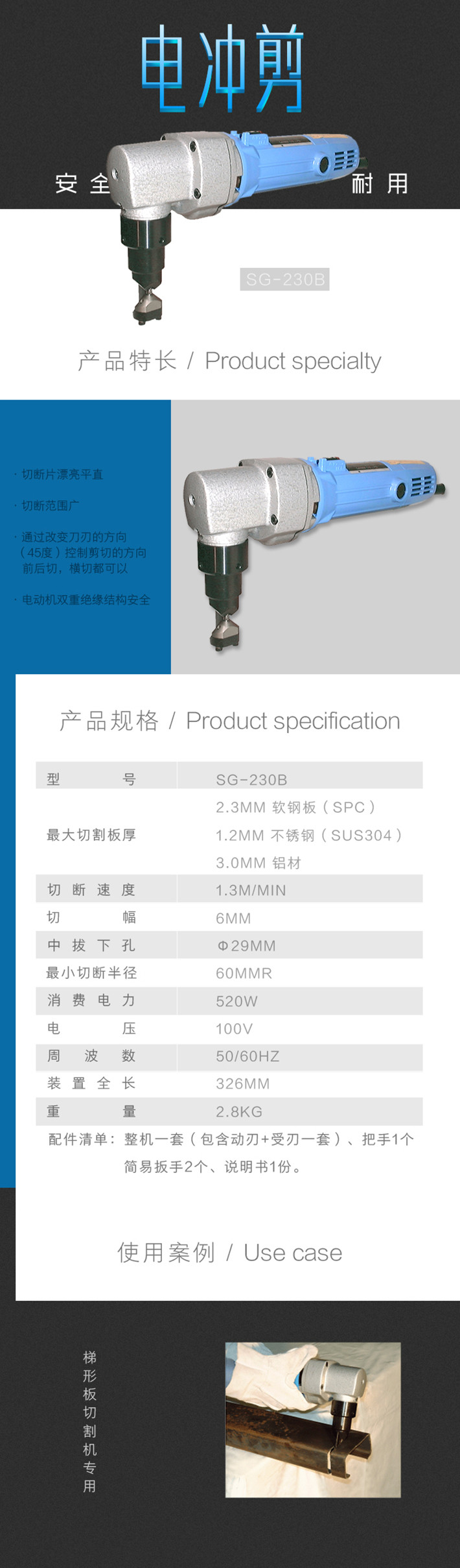 中山川井貿易有限公司是日本三和株式會社在中國的代理,銷售維修日本三和SANWA電沖剪、坡口機。SG-230B電沖剪,SG-230B梯形切割機,SG-230B電剪刀。歡迎垂詢,電話:0760-85338981-605,傳真:0760-85338185,郵箱:sales11@zskawai.com,QQ:
