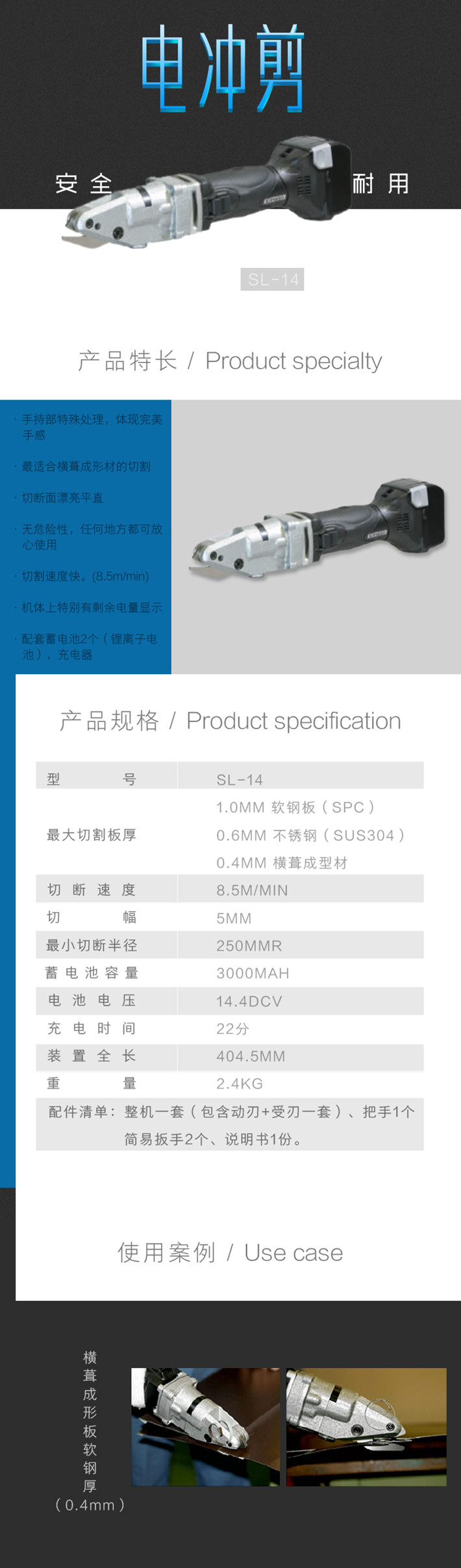 中山川井貿易有限公司是日本三和株式會社在中國的總代理,銷售維修日本三和SANWA電沖剪、坡口機。SL-14電沖剪,SL-14切割機,SL-14電剪刀。歡迎垂詢,電話:0760-85338981-605,傳真:0760-85338185,郵箱:sales-ec@zskawai.com,QQ:1521225565