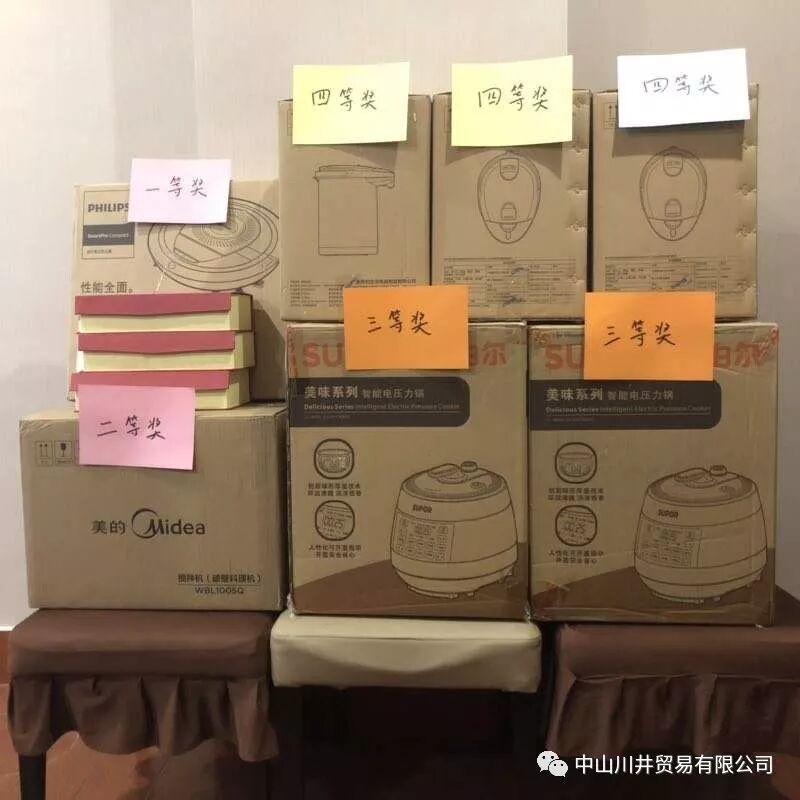 1月26號晚上, 我司旗下三大公司中山川井貿易、武漢川井貿易(在線視頻同步)和佛山川井貿易,歡聚在“大臉貓主題餐廳”,共同慶祝2017的尾牙年會,也共同迎接2018年新春到來。現場活動豐富,既有充滿掌聲與榮譽感的頒獎環節,又有期待滿滿的幸運大抽獎,還有好玩的小游戲,最后還少不了去KTV歡唱一把。