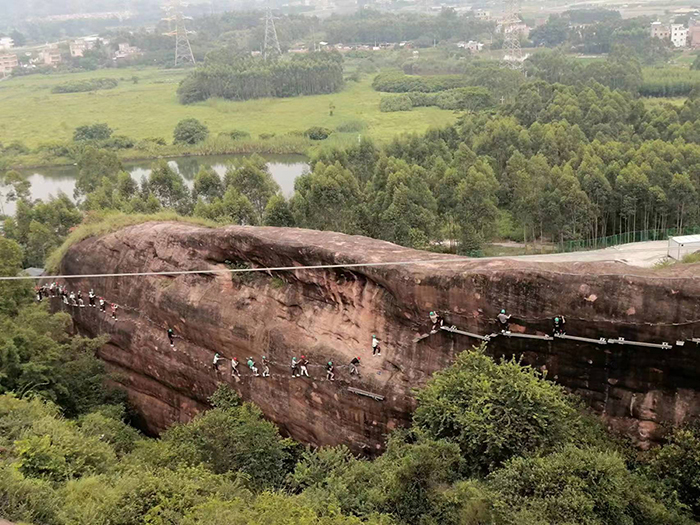 爬馬頭山,走驚險的旋轉天梯,跨高空繩索橋,攀不同難度等級攀巖。