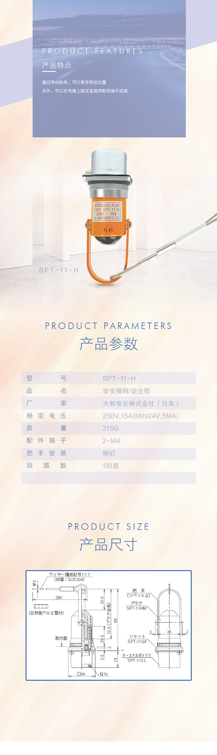 中山川井貿易有限公司現貨供應日本大和電業Daiwa Dengyo安全插件(INTERLOCK PLUG),SPT-11-H安全鎖,SPT-11-H安全開關,SPT-11-H安全栓,SPT-11-H安全插銷,SPT-11-H連鎖插頭,SPT-11-H連鎖開關,SPT-11-H連鎖插銷。歡迎垂詢,電話:0760-85338100,郵箱:sales-ec@zskawai.com